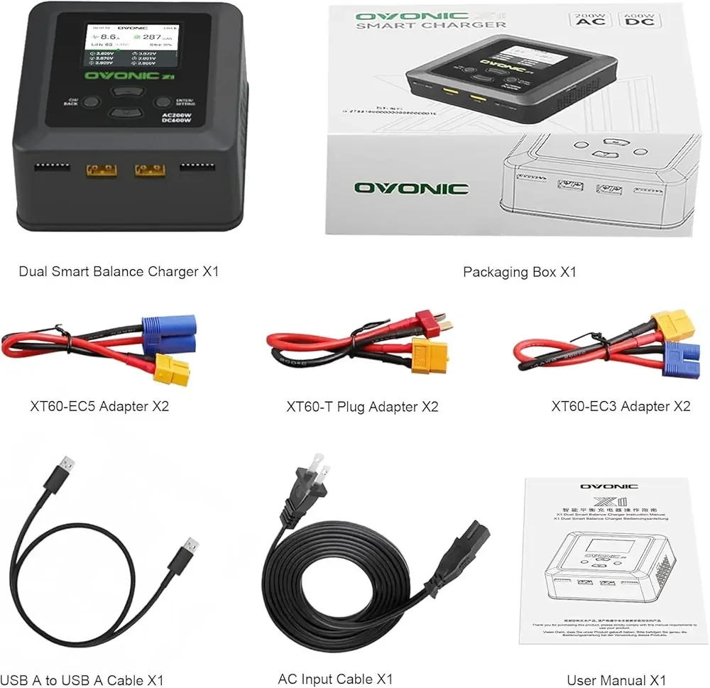 OVONIC Chargeur Lipo 200W 15A AC200W DC300W Dual Balance Chargeur pour 1-6S Li-ION NiCd NiMH LiHV RC Batterie RC Modèles (X1)
