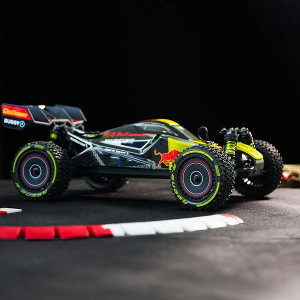 Ce buggy brushless est prêt à l'emploi dès sa sortie de boîte pour dévaler tous les terrains, avec une batterie 3S (11,1 V 2 200 mAh) incluse. Un sachet de pièces détachées et d'accessoires est également fourni.